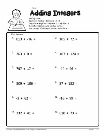Adding Integers Worksheets